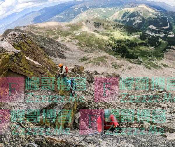 冒险家们在科罗拉多州的阿拉帕霍盆地通过飞拉达或铁道攀登北美最高的山峰。