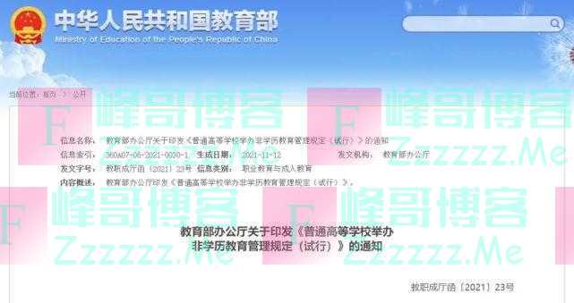 记者从教育部获悉,教育部办公厅19日发布关于印发《普通高等学校举办非学历教育管理规定(试行)》(以下简称《规定》)的通知。