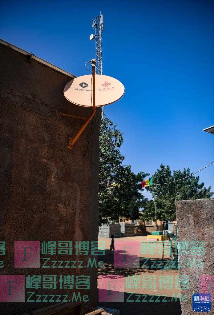 这是11月22日在塞内加尔达喀尔近郊的辛迪亚小学拍摄的卫星电视接收器。