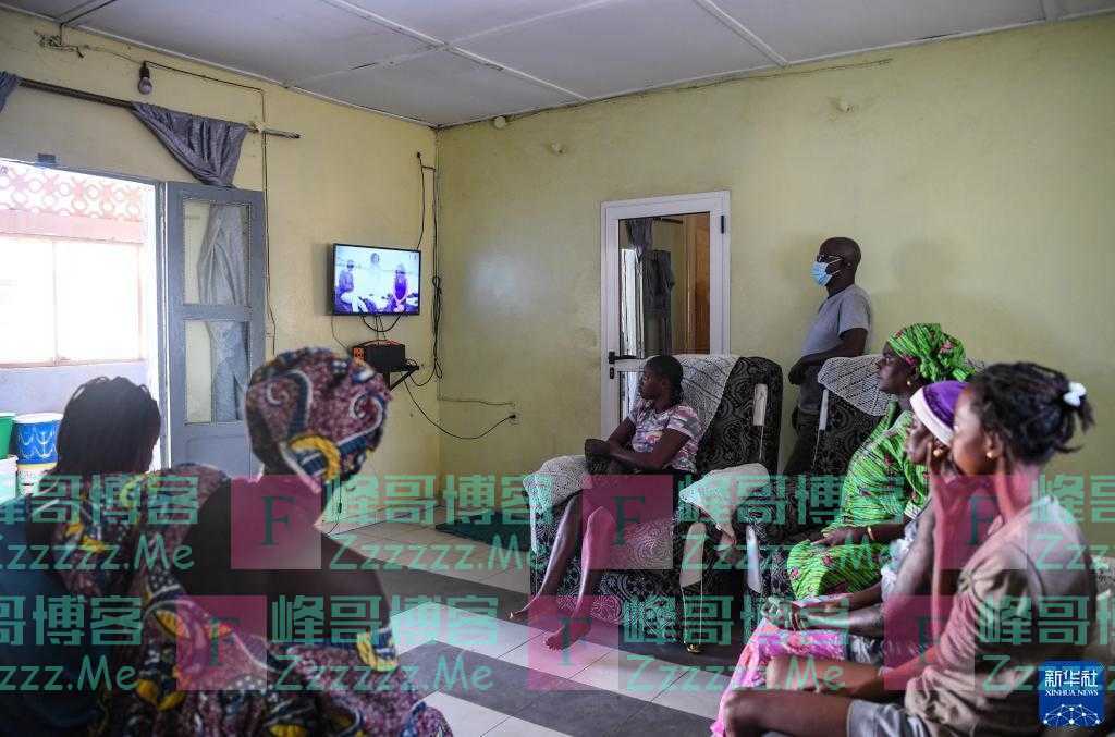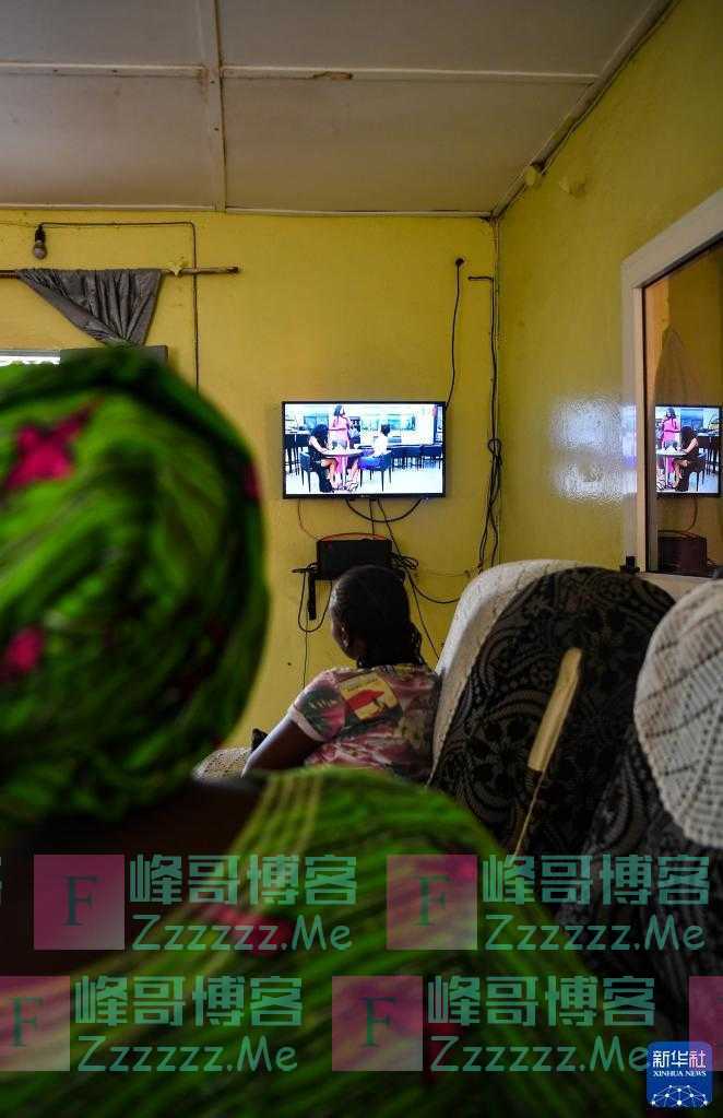 11月22日,在塞内加尔达喀尔近郊的辛迪亚村,村民使用“万村通”项目的电视机顶盒观看电视节目。