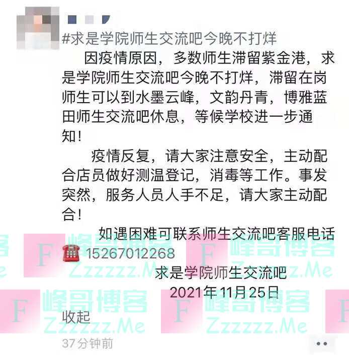 在此之前,浙江大学官方微信也发布了该消息,并表示浙江大学紫金港校区已经封闭,并开始全面核酸检测。目前,浙江大学紫金港校区处于“只进不出”的状态。