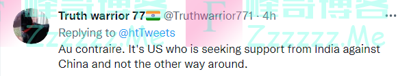 也有一种声音认为,是美国在寻求印度的帮助。有网友表示,“恰恰相反。是美国在寻求印度的支持,以对抗中国,而不是反之。”
