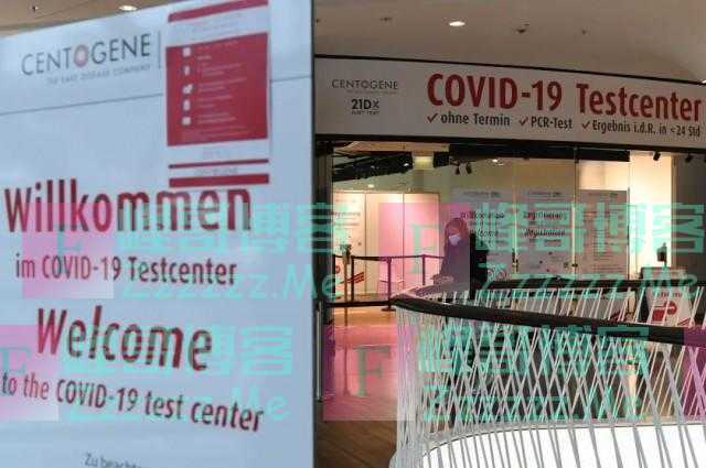 11月19日,在德国法兰克福,一名女子经过一家商场内的新冠病毒检测中心。新华社记者 逯阳 摄