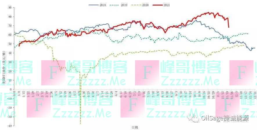 2018年全年(蓝色)、2019年全年(深绿色)、2020年全年(浅绿色)及2021年至今(红色)油价走势图,来源:微信公号捷诚能源凯投宏观的Neil Shearing表示,油价暴跌反映出“人们担心新型变异毒株将导致广泛的旅行限制和石油需求下降”,“欧佩克将于下周举行会议,这些需求担忧可能会促使他们推迟或停止逐步增加供应的计划。”一位OPEC代表在谈及新变体时表示:“不太好,它给疲软的油市前景增加了看跌情绪。”市场消息称,OPEC+越来越倾向在下周的会议上放弃原定于1月份小幅增产的计划。OPEC+将于12月2日举行会议,届时将讨论明年1月份的石油产出计划,还将评估新型变异毒株对市场的意义。有消息称,一个向部长们提供建议的OPEC小组认为,以美国为首的石油储备释放将增加明年的供应过剩。