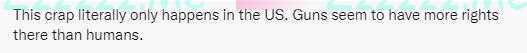 “这种事真的只会发生在美国。枪支拥有的权力看起来比人还多。”