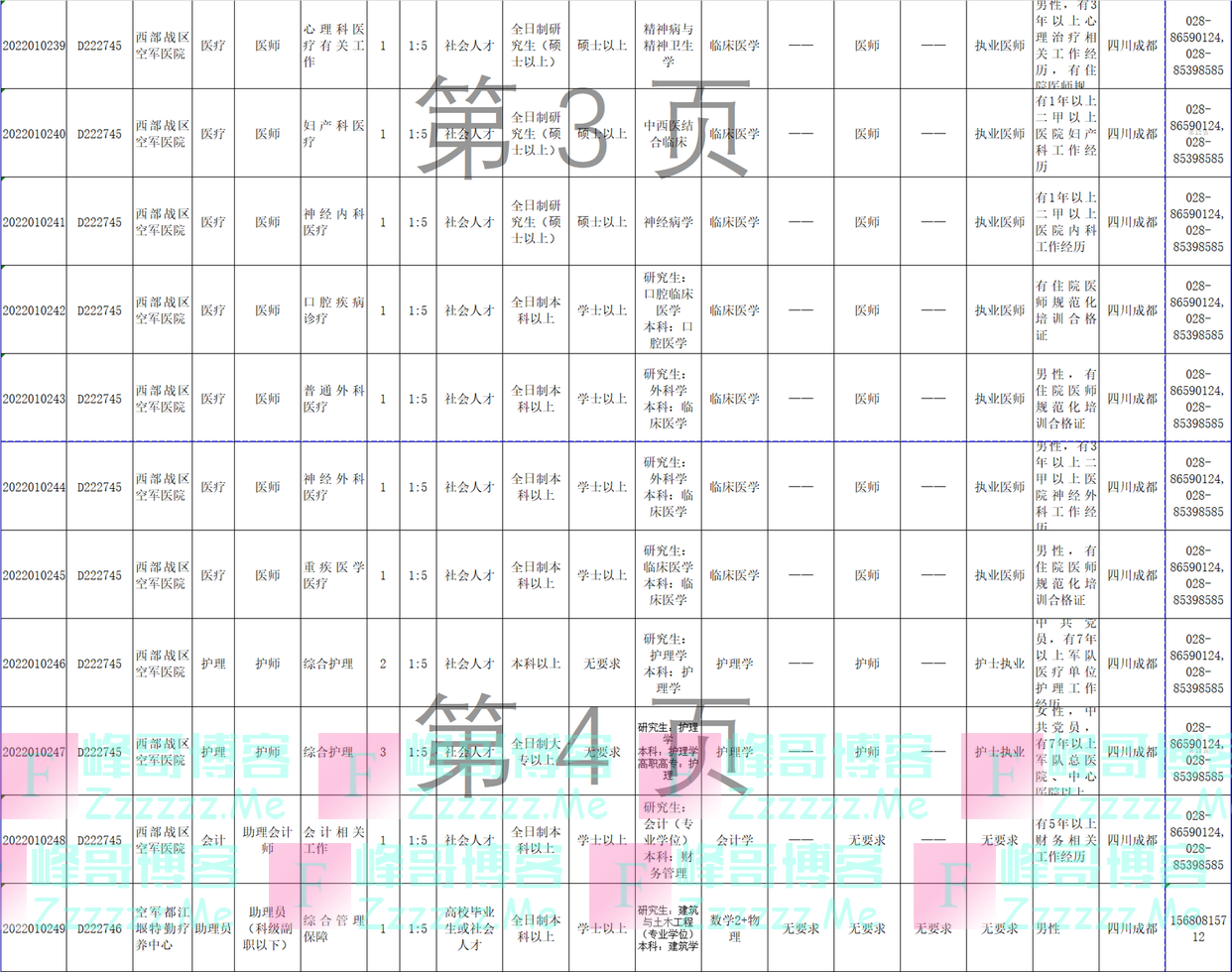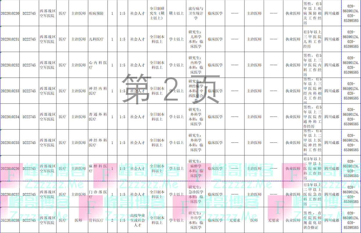 12月6日,记者从西部战区空军政治工作部获悉,2022年军队面向社会公开招考文职人员工作全面展开,西部战区空军计划招考67人,其中面向博士以上人员免笔试招考医疗专业2人,报名截止时间为12月9日18:00。