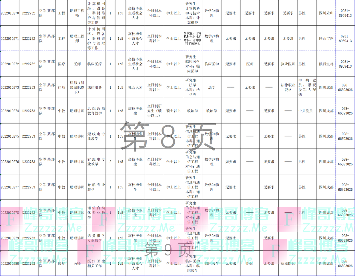 招考专业涵盖电子信息类、电气类、计算机类、土木类、测绘类、临床医学类、护理类、心理学类、医学技术类、教育技术、新闻传播学、音乐学等。岗位计划详情可关注“西部空天”微信公众号或者军队人才网。