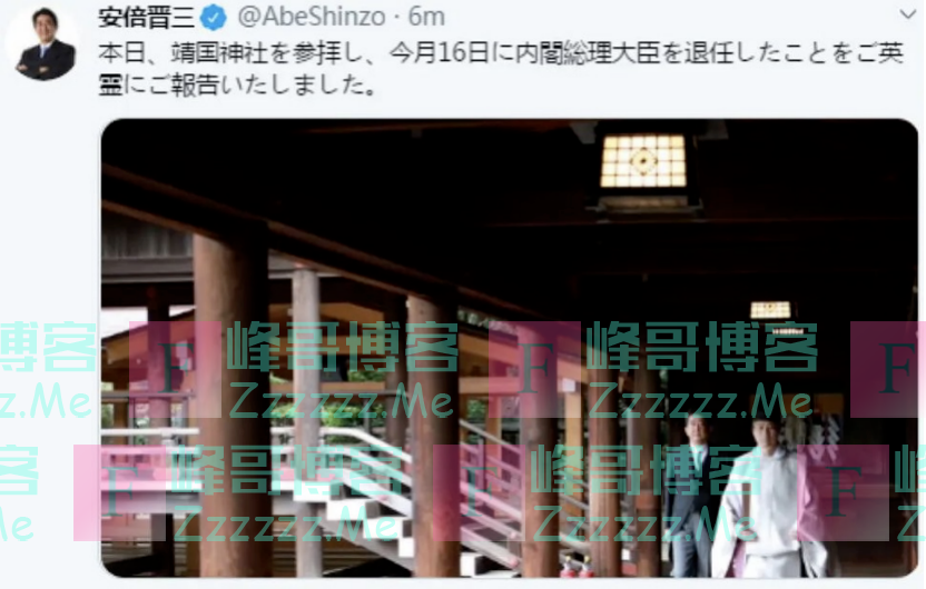 2020年9月19日,安倍参拜靖国神社且在社交媒体自我吹嘘