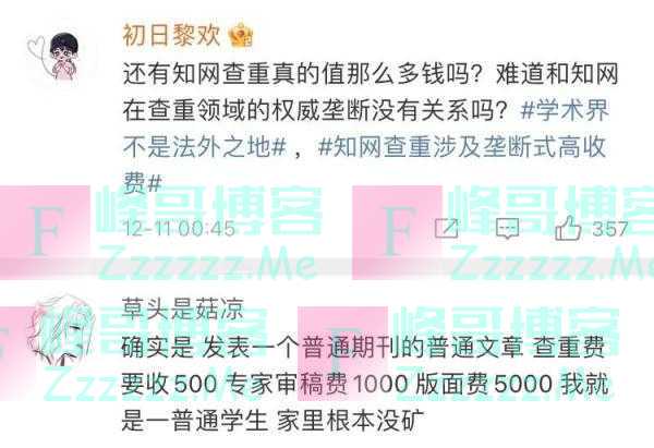 学术界关于知网的吐槽比比皆是:下载一篇文献要7元,但是需要最低充值50元才能购买;涨价幅度每年都在10%以上,高昂价格曾令多地高校停用,最后却又不得不屈服于知网的垄断地位而无奈交钱;更别提知网的收入大头:查重,那更是很多学生不堪承受之重。