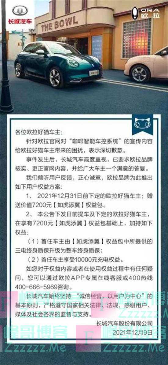 多次官方回复表现了长城“积极沟通与及时反馈”的态度,而本着“诚信经营、以用户为中心”的基本原则,12月9日,品牌再推如下用户权益方案: