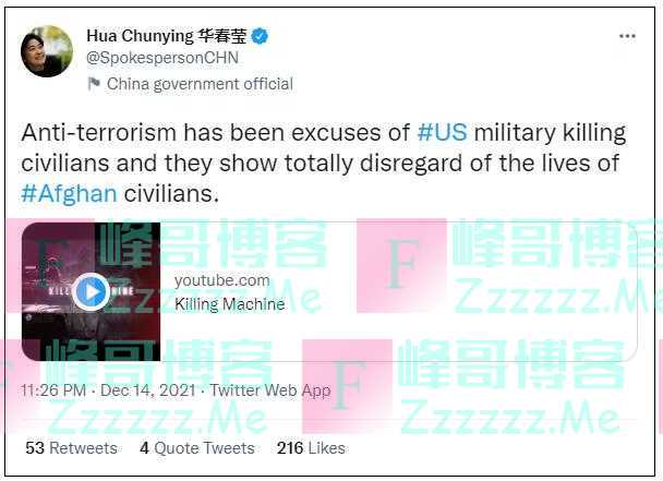 译文:美军以“反恐”之名杀戮平民,他们完全无视阿富汗平民的生命。