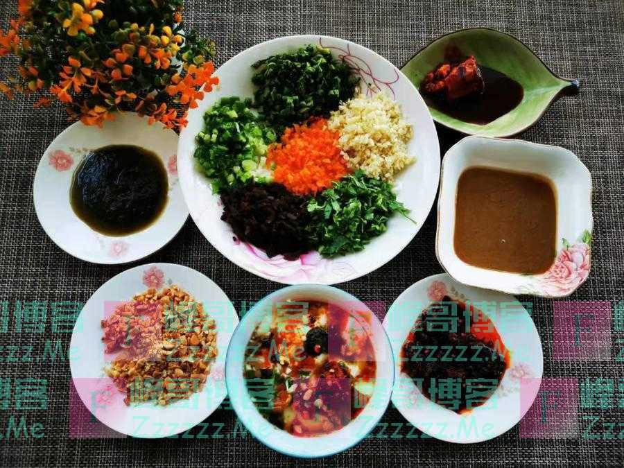 调料:小香葱、香菜,香椿芽,疙瘩咸菜,胡萝卜咸菜,大蒜末,豆腐卤,麻汁,韭花,辣椒酱(油泼辣椒更好),花生碎,味极鲜酱油,香醋,蚝油,香油,白胡椒面等(根据自己喜好的口味自行添加)。