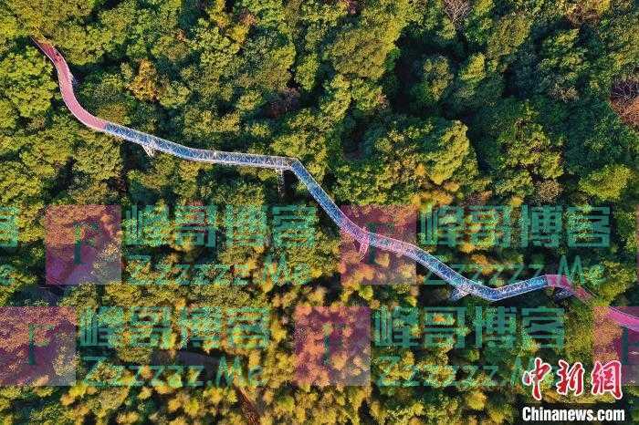 本文转自【中国新闻网】; 航拍江西省赣州市大余县丫山风景区的森林步道。 刘占昆 摄