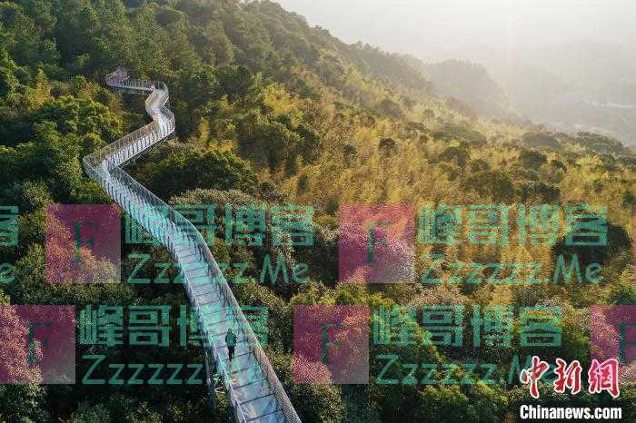 本文转自【中国新闻网】; 游客行走在江西省赣州市大余县丫山风景区的森林步道上。 刘占昆 摄