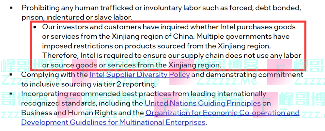 这封信发布于今年12月,是英特尔对供应商的最新要求:禁止任何形式的贩卖人口或非自愿劳工行为,如强迫劳动、债务劳工、契约劳工或奴役。
