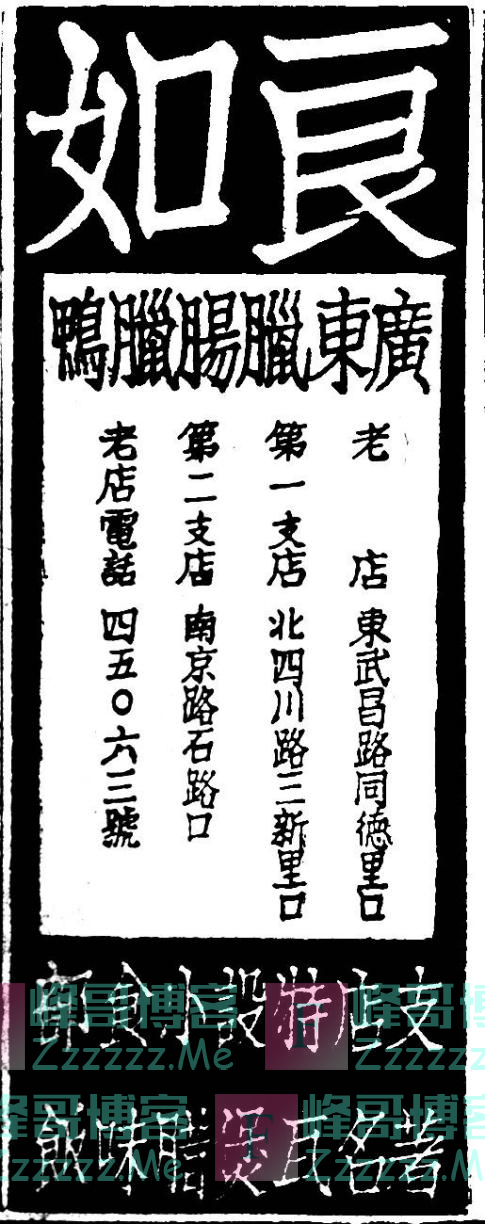 1933年《新闻报》广告让康有为不顾读书人体面,甘愿“瓜田纳履”的腊味,也令其他广东籍文人恋恋不忘,为文坛八卦奉献了不少谈资。1937年,途径上海真如张宅的某作家,在宅主广东梅县人张资平的“门面”前震惊良久。据后来发表于《时代生活》杂志的文章记述,张资平“门前陈列了两排腊肠在太阳下晒,数目至少当在五六百节以上”,如此巨量,恐怕已不是“嗜好”二字所能概括。近代上海,广东移民鱼贯而入,形成了与“宁波帮”、“苏北人”等群体平行的“广帮”,深刻影响着近代上海城市历史进程。老广们给上海带来了百货商店,也送来了诸色腊味。