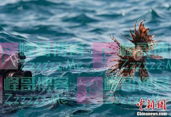 委内瑞拉的卡拉科利托海滩,一名渔民展示用鱼叉捕捉到的狮子鱼。当地政府举行此类钓鱼比赛旨在激发当地渔民参与捕捞和消费狮子鱼,该物种会损害珊瑚礁生态系统。
