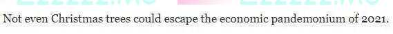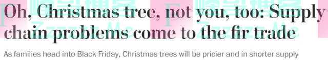 用《华盛顿邮报》的话说,“就连圣诞树也逃不过2021年的经济混乱”。因为据美国圣诞树协会估测,今年的圣诞树价格上涨了10%-30%。