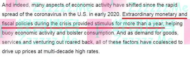 尽管通胀压力上升有劳动力短缺和供应链中断等供给侧因素,但众多经济学家一致认为,美国政府实行了一年多的“钱政”才是今年价格上涨的主要推手。