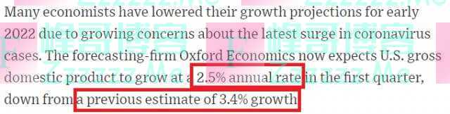 由于对新一波疫情的担忧日益加剧,很多经济学家都大幅下调了对2022年初美国经济增长前景的预期。