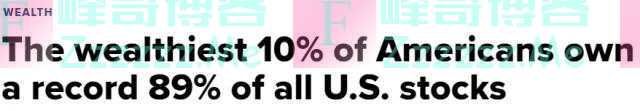 美联储数据表明,美国最富有的10%的人群现在拥有美国89%的股票和基金持有权。该数据创下历史新高。