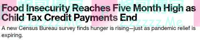 彭博社:美国人口普查局的数据显示,12月初有2100多万美国人“食不果腹”。