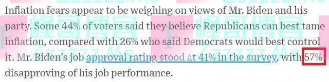 《华尔街日报》:约61%的受访者认为美国经济正朝着错误方向发展,57%的受访者不认可民主党籍总统拜登的执政表现。