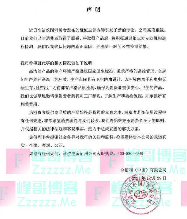 卫生巾被曝有虫卵,高洁丝回应》发布于2021-12-30