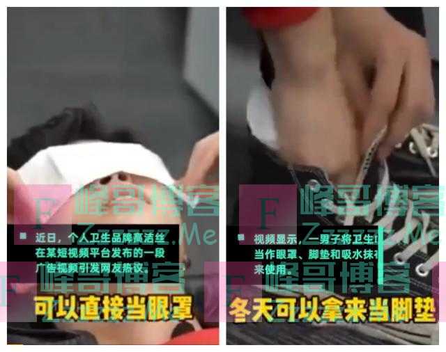除被曝卫生巾出现虫卵,高洁丝近日在某短视频平台发布的一段广告视频也曾引发网友热议。视频显示,一男子将卫生巾当作眼罩、脚垫和吸水抹布来使用。