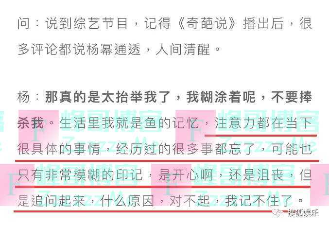 面对外界对她“通透”、“清醒”的评价,杨幂觉得这是在“抬举”她。她说很多事情她的注意力都只在当下,过后就忘了,所以不太会被情绪左右。