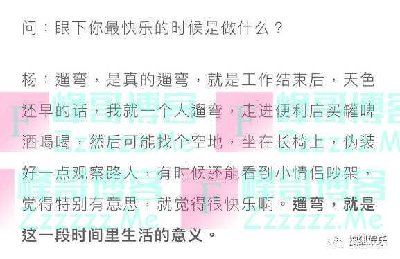 杨幂还说,她现在最喜欢做的事情是收工后一个人遛弯,溜去便利店买一听啤酒,在街边看着小情侣吵架,感受烟火气。