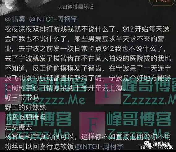 还有粉丝直接发文控诉周柯宇,说男爱豆“求也求不来的营业”,却和女明星夜夜深夜打双排,还给女明星送金币。