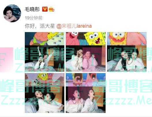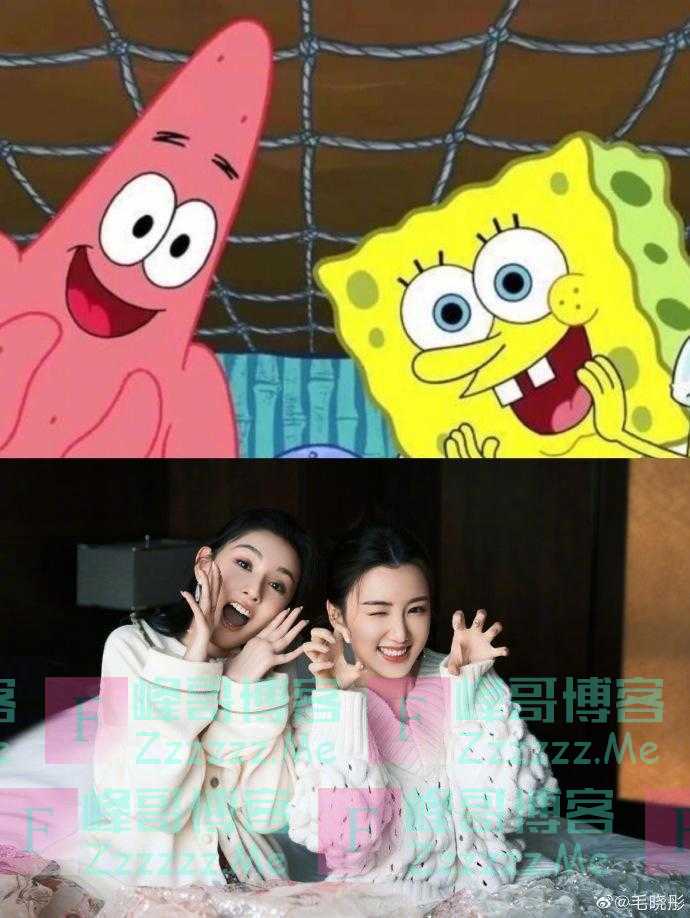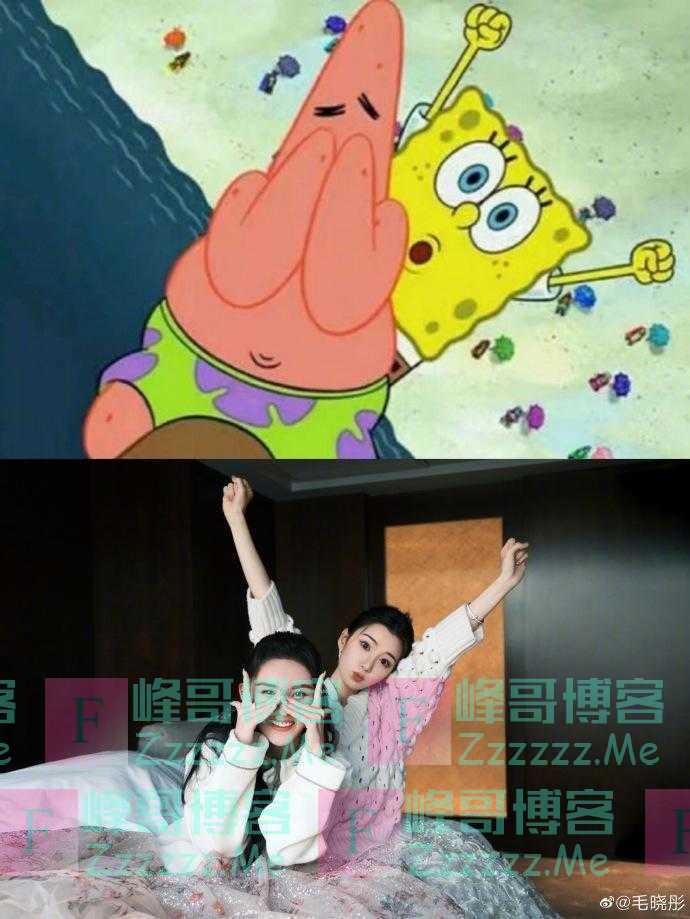 新浪娱乐讯 29日,毛晓彤、宋祖儿分别在微博晒出和对方的合照,二人模仿海绵宝宝派大星姿势拍照,好有爱!网友纷纷表示:“三丽四美又合体了”“梦回乔家!”