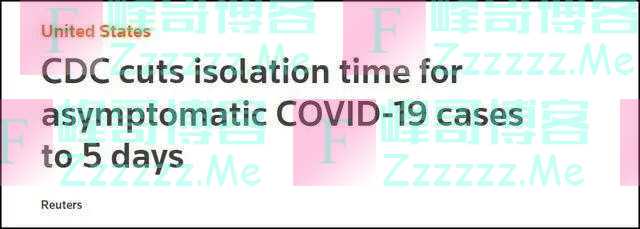 当地时间27日,CDC更新了新冠感染者的隔离指南,建议新冠病毒检测呈阳性的美国人的隔离时间从10天缩短到5天,并要求随后5天在有其他人在场情况下佩戴口罩。