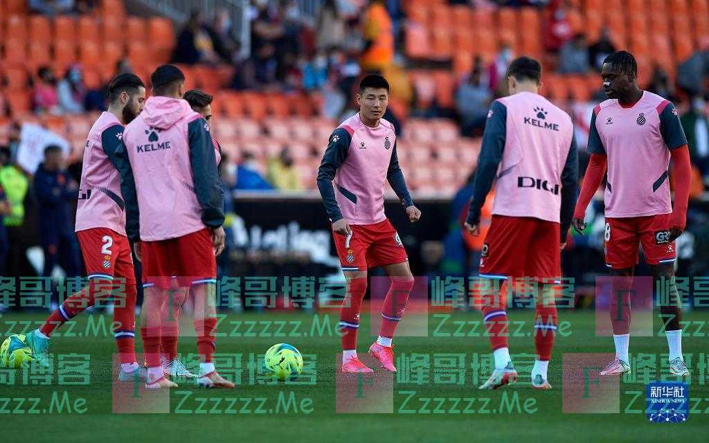 12月31日,西班牙人队球员武磊在场边观赛。
