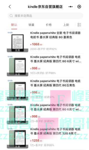 记者搜索发现,在京东平台Kindle官方自营店内,售价998元的Kindle经典版与2757元的Kindle尊享版全部显示“缺货”,目前在售的只有一款售价658元的Kindle青春版。对此,京东自营店客服表示:“厂家目前没货,后续会补货。”