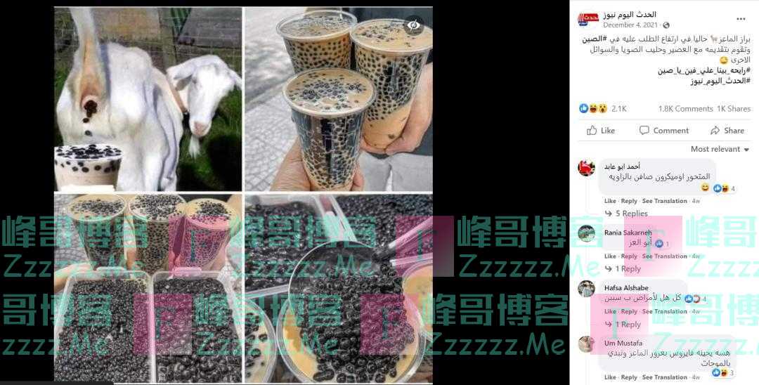 前段时间,脸书(Facebook)和阿拉伯语网络上流传一组图片称,因富含高蛋白质,羊粪在中国的需求大大增加,人们喜欢把它和果汁、豆浆搭配在一起喝。