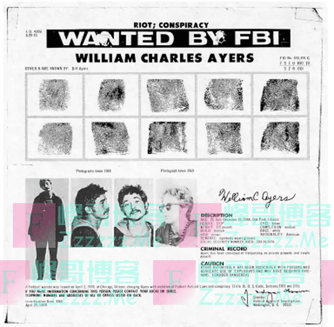 联邦调查局网站截图1970年,艾尔斯为联邦调查局所通缉。在逃4年后,由于检方的不当行为,联邦调查局撤销对“地下气象员”组织的指控。