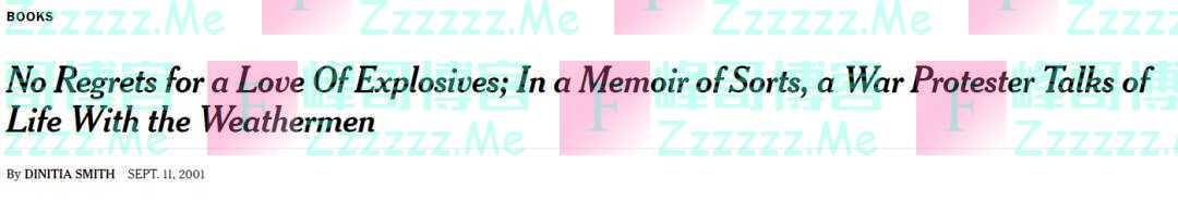 《逃亡的日子:一个反战运动人士的回忆录》封面在《纽约时报》2001年9月11日刊登的一篇对艾尔斯新作《逃亡的日子》的书评中,艾尔斯坦诚道:“我不后悔设置炸弹……我觉得我们做得还不够。”