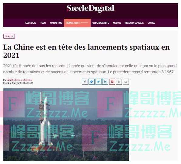 同日,法国数码世纪网也报道称,2021年全球共进行航天发射活动144次,打破了冷战时期的历史记录。报道写道,在太空探索领域,中国等国家已经登上了舞台,其中,中国是去年世界上航天发射次数最多的国家,这无疑表明了中国在太空领域发展的坚定决心。