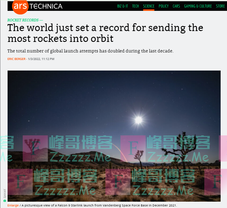美国科技网站Ars Technica3日发文称,自2010年来,中国航天事业的飞速崛起是全球航天领域最大的变化之一。在轨道发射方面,2022年全球的数量可能会再创新高,中国的航天事业也将继续高速发展。