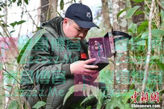 1月14日,广东省韶关市,广东南岭国家级自然保护区工作人员张崇万查看红外相机监测拍摄野生动物的情况。 中新社记者 陈骥旻 摄