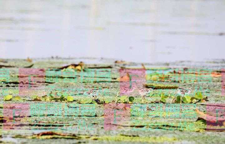 浩瀚的湖面上,几只呆萌雏鸟好可爱
