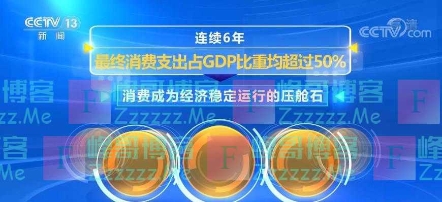 连续6年,最终消费支出占GDP比重均超过50%,消费成为经济稳定运行的压舱石。