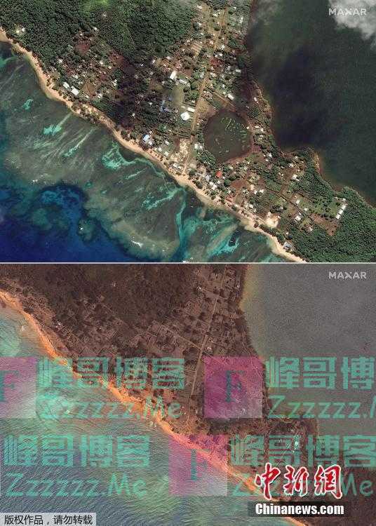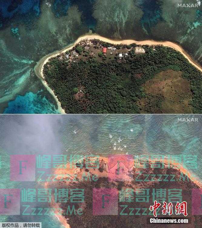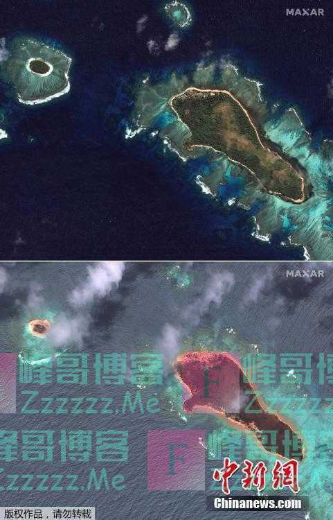 卫星图看汤加火山喷发前后岛屿变化》发布于2022-1-27