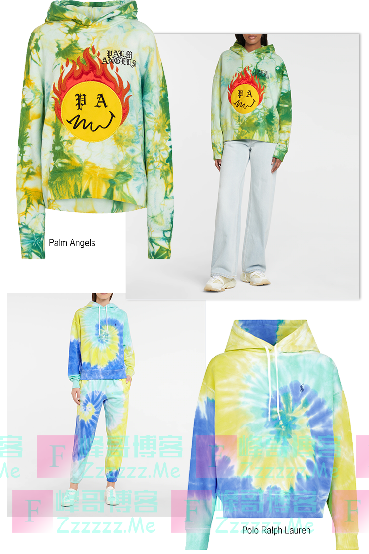 还有Palm Angels、Polo Ralph Lauren家也都选择通过亮丽的扎染图案来丰富卫衣的色彩, 非常醒目。