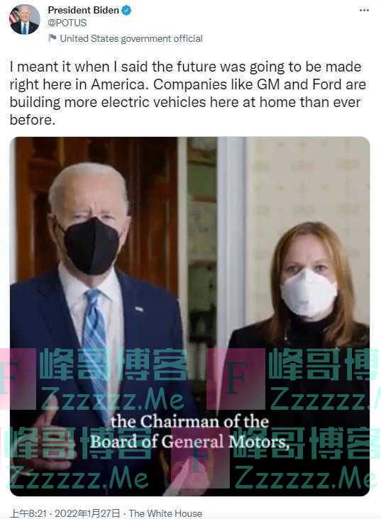 此外,在发布那段视频时,美国总统官方推特账号还配文称,“当我说未来将在美国创造时,我是认真的。像通用和福特这样的公司在美国生产的电动汽车比以往任何时候都多。”在视频中,通用汽车首席执行官巴拉宣布,该公司将在密歇根州投资70亿美元,并在美国开设一家电池工厂。