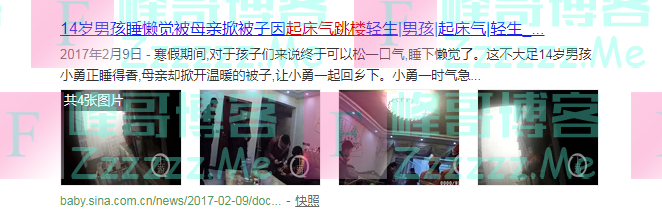 2017年,一名14岁男孩在睡的正香时被母亲掀被子,在严重的起床气驱使下,一气之下从12楼跳下,幸好消防员及时赶到,才避免了一场惨剧的发生。