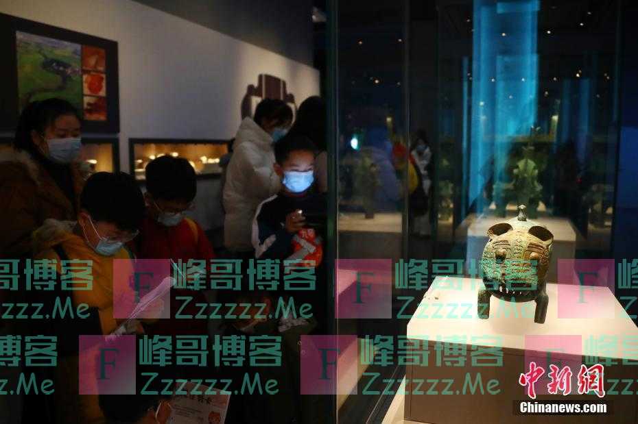 本文转自【中国新闻网】; 2月4日,游客在江西省博物馆里参观该馆的镇馆之宝——商代“伏鸟双尾青铜虎”。 刘占昆 摄