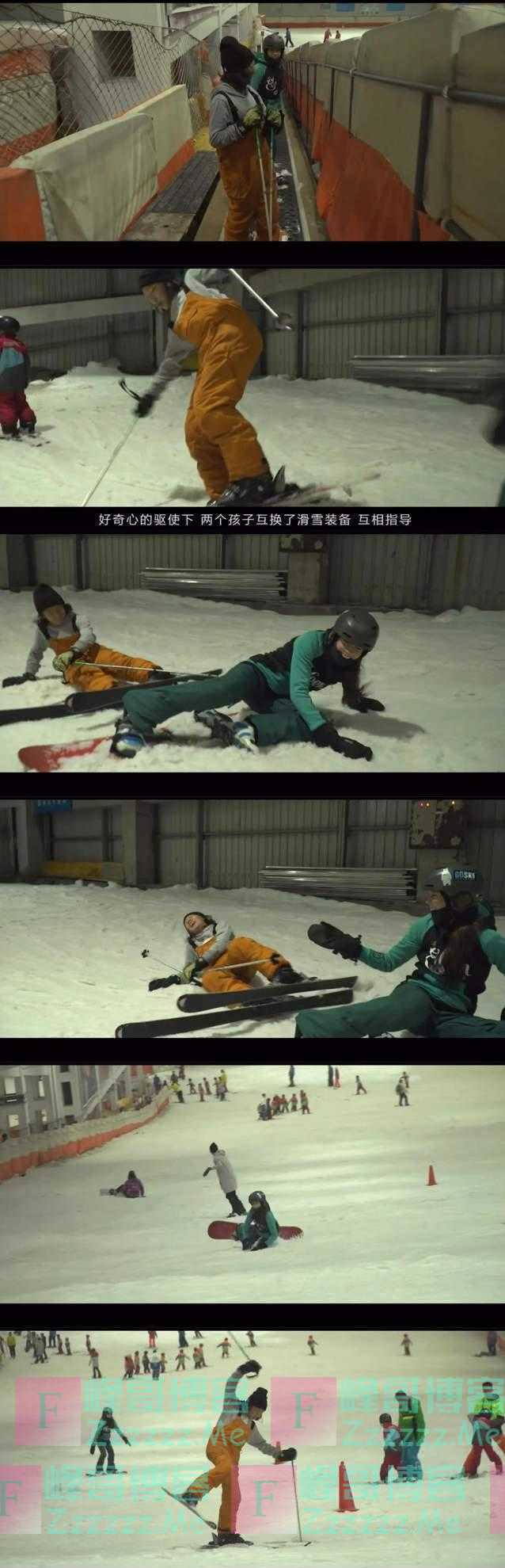 在滑雪场上,他们还互相玩起了对方的训练项目,即使跌倒了,爬起来之后依旧笑意盈盈。